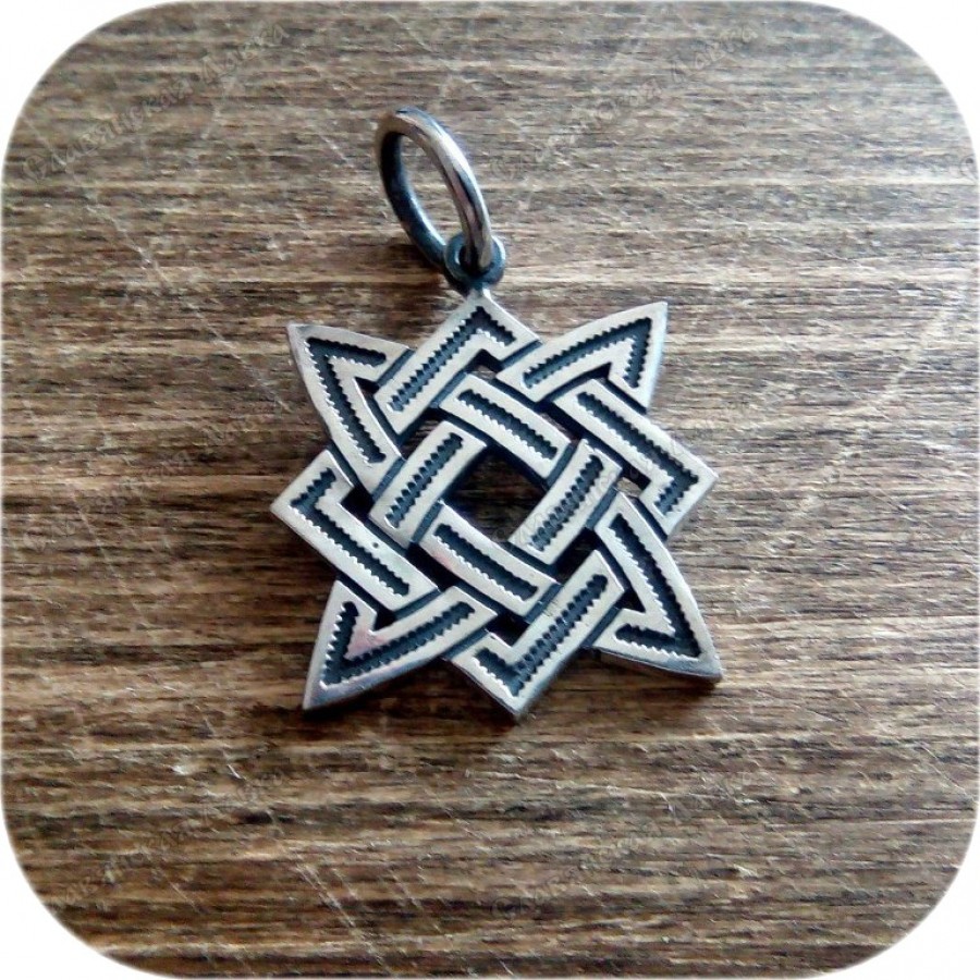 Серебряный оберег в виде славянского символа «Квадрат Сварога» - оригинальное этническое украшение и прекрасный талисман для славян любого пола. Данная вариация оберега отличается чуть большим размером, а также тем фактом, что символ не помещен в круг, то есть ничем не ограничивается.
