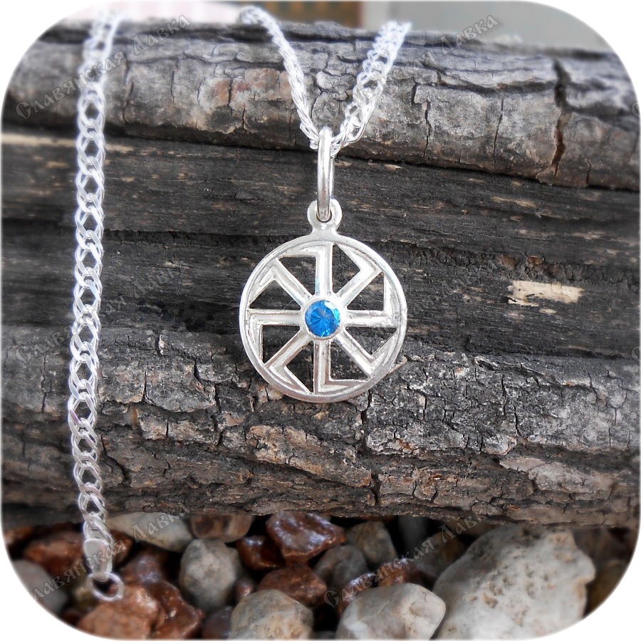 Серебряный кулон «Коловрат Посолонь» из новой серии малых оберегов. Обереги данной серии при небольшом размере и весе выглядят достаточно интересно и могут одинаково хорошо подойти как взрослым, так и детям, как мужчинам, так и женщинам. В центре символа размещен фианит, по желанию клиента за отдельную плату может быть установлен любой драгоценный или полудрагоценный камень.