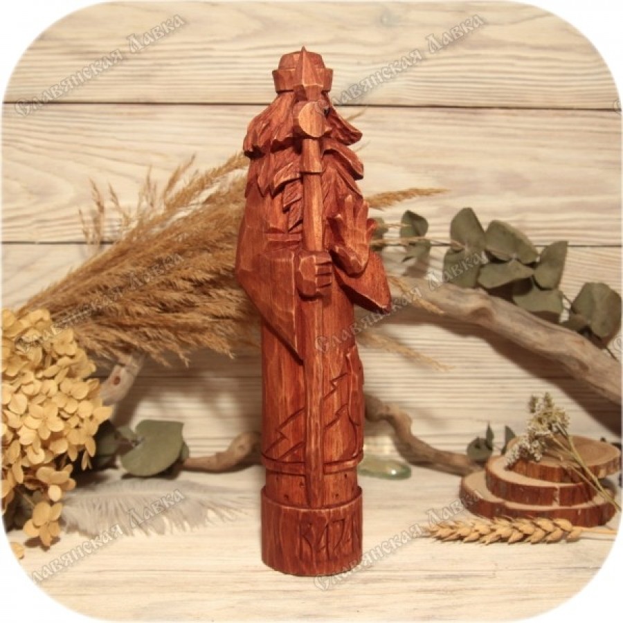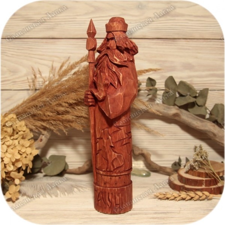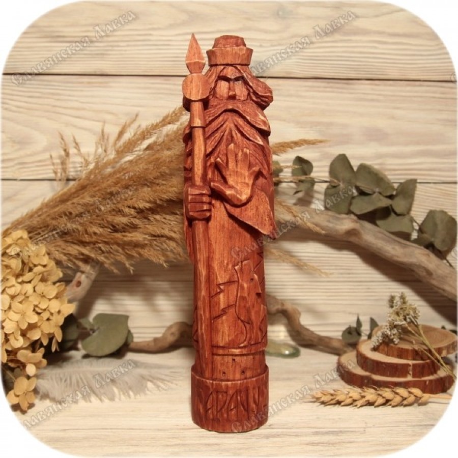 Этот детально проработанный кумир станет жемчужиной малого славянского святилища. Работа, выполненная с соблюдением всех традиций и канонов, покрыта морилкой, но сохраняет свою естественность, не затмеваясь глянцем лака.