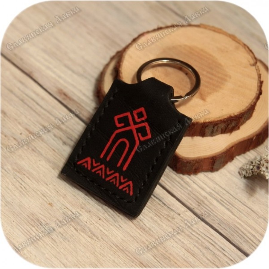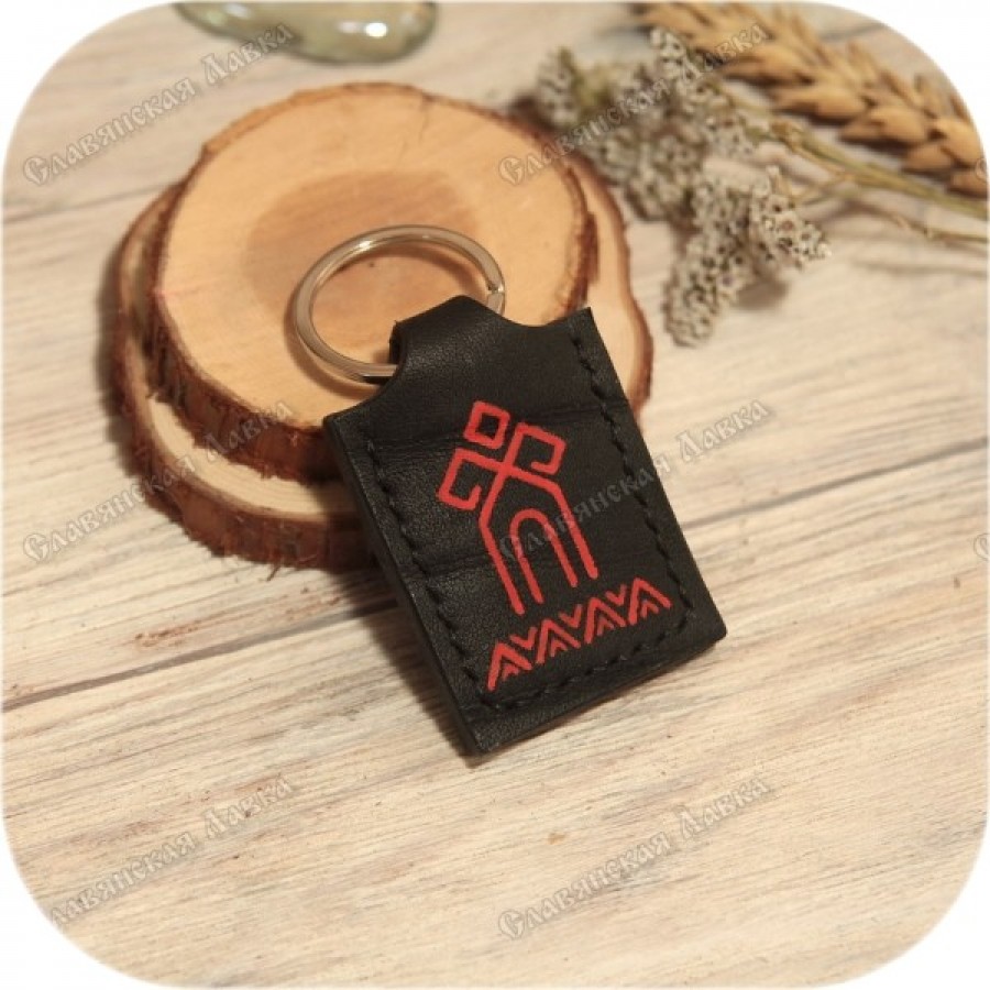 Изготовленный вручную из натуральной кожи черного цвета, брелок отличается высоким качеством исполнения и вниманием к деталям. Красный символ, искусно нанесенный на кожу, не только создает яркий контраст, но и подчеркивает сакральное значение оберега.