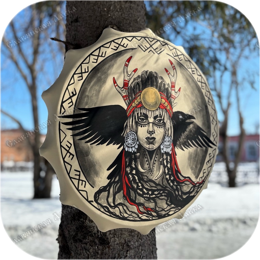 | Советы по уходу и рекомендации при выборе | Изделия изготавливаются только из натуральных компонентов, мы не делаем инструмент с тканевой мембраной. Хранить в сухом и теплом месте. Транспортировать лучше всего в каркасном чехле. Перед использованием инструмент следует нагреть, например от костра. Нельзя смазывать маслом со скипидаром! Нельзя использовать в бане! Если бубен промок, его обязательно нужно просушить. Не оставляйте изделие на природе, если может образоваться роса. Рисунок на бубне будет служить долго, его ничем дополнительно обрабатывать не нужно. |