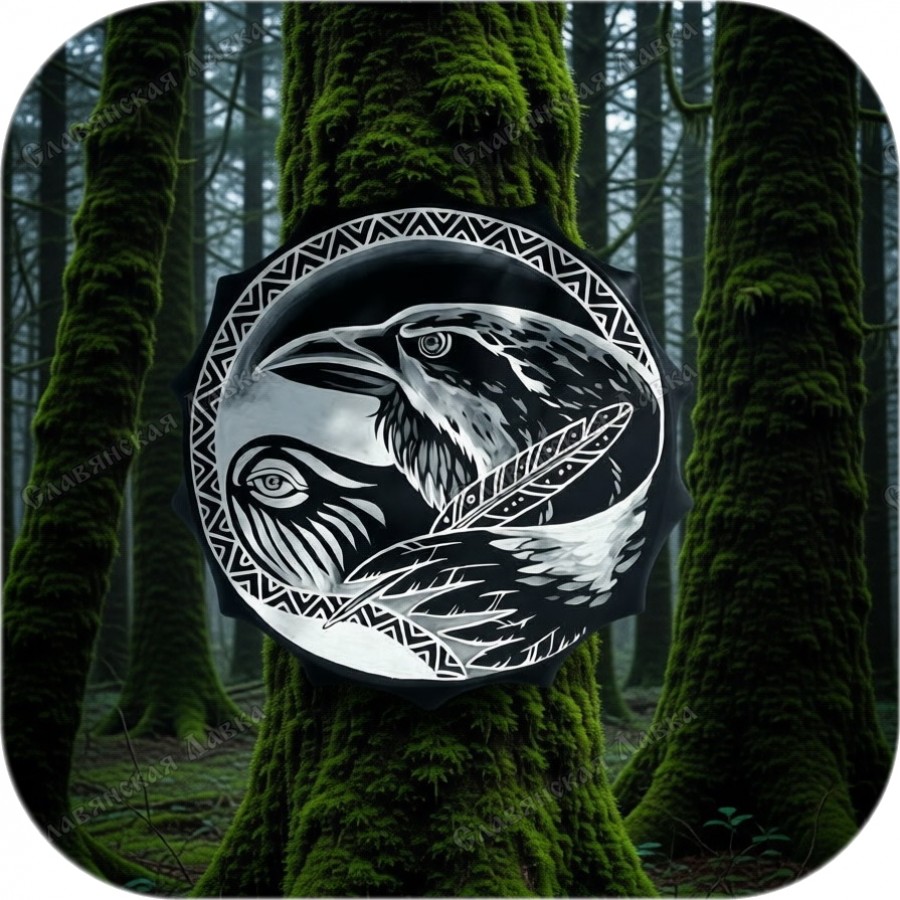 Ворон на сложном рисунке, нанесённом вручную, конечно, в первую очередь ассоциируется с Одином - ведь это один из его спутников. Ну и у славян ворон был известен как тотем, являющийся олицетворением мудрости и жизненного опыта. Оберег с ним поможет принять правильное решение, защитит от ошибок. Эти качества, даруемые мудрой птицей, бесспорно, помогут как начинающему, так и опытному шаману.