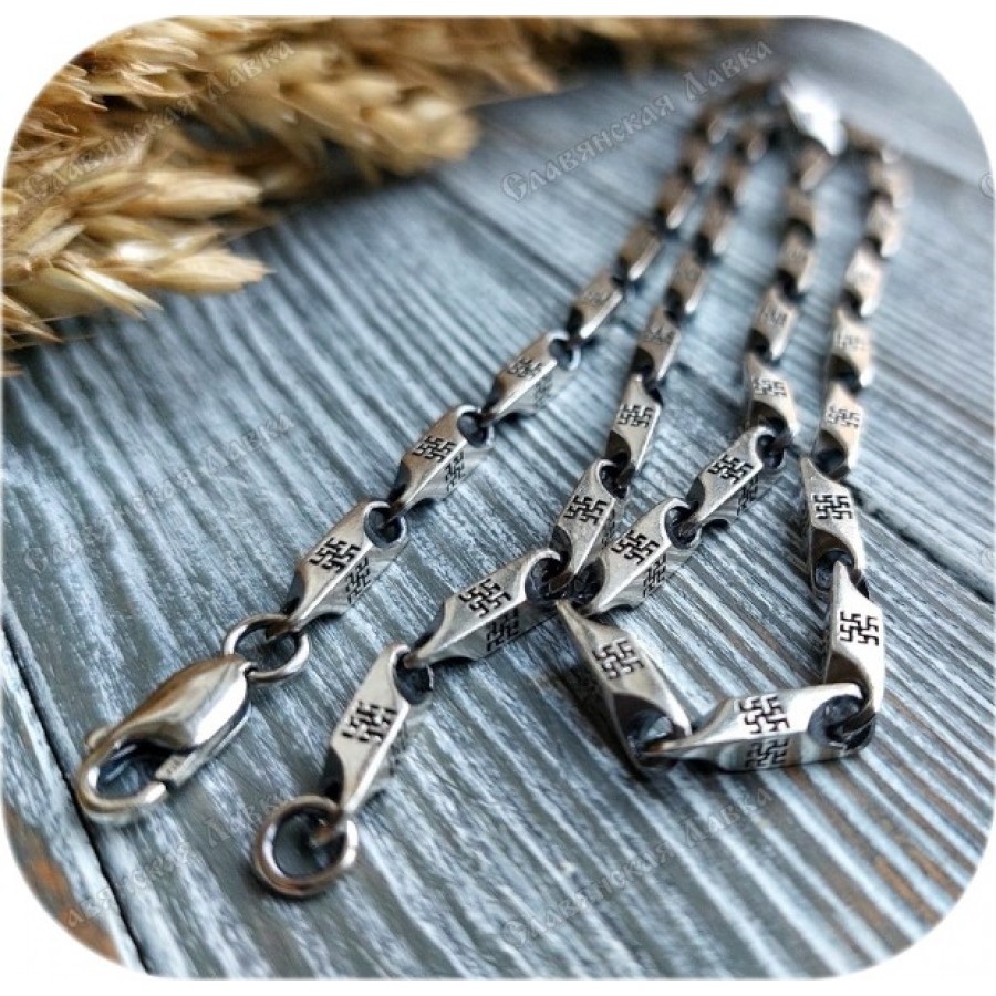 ЦЕПЬ СЕРЕБРЯНАЯ ОБЕРЕЖНАЯ С СИМВОЛОМ ЦВЕТОК ПАПОРОТНИКА 65см (НАЛИЧИЕ)