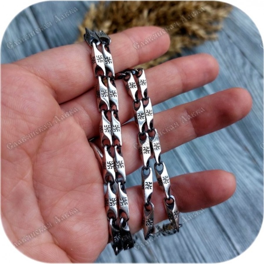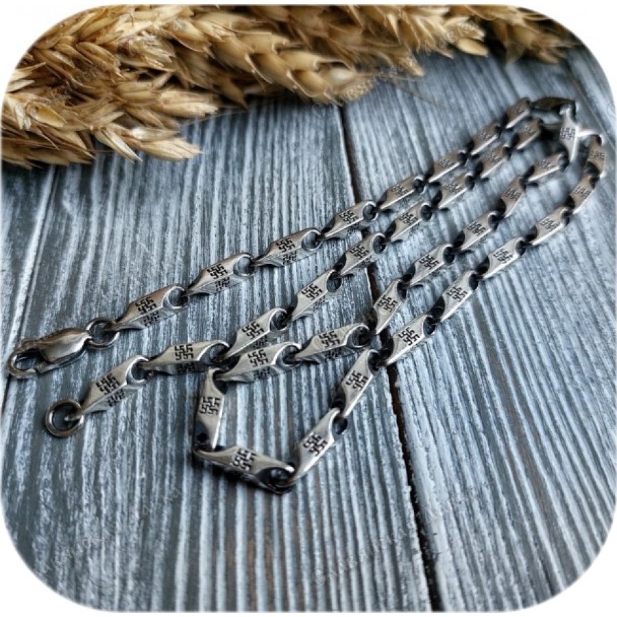 Серебряная цепочка со славянскими символами, предназначенная как для ношения славянских оберегов, так и без оных.