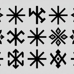 Исследователи славянских древностей считают, что данные символы являются вязевыми, это если по кельтской традиции, или узелковыми, если по славянской. Это солярные символы и обозначают они, в конечном счёте, солнце и его движение. Рисуется данный символ как квадрат, в который вплетены два овала или с острыми концами, или с закруглёнными. Квадрат имеет наклон, что обозначает движение солнца. А четыре стороны овала - это четыре времени года. Ещё отметим ряд графических особенностей. Если лучики овала заходят на квадрат с права, а спускаются слева, то это показывает растущее солнце, если наоборот - то увядающее. Это символизирует жизнь, смерть и возрождение природы.