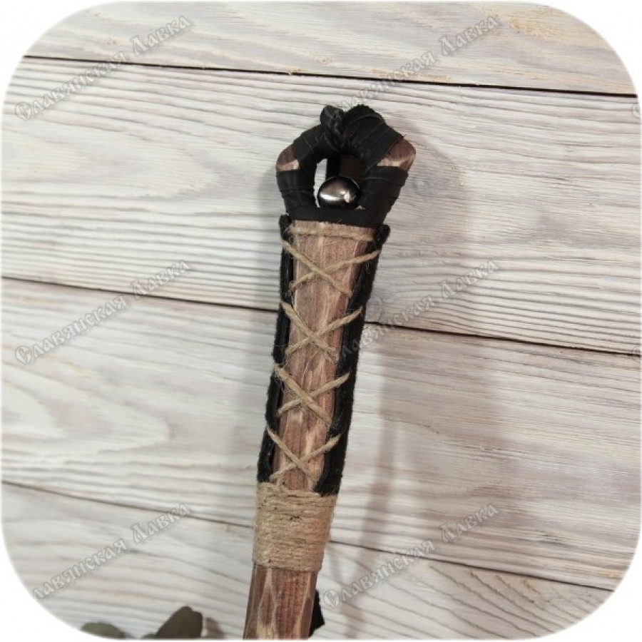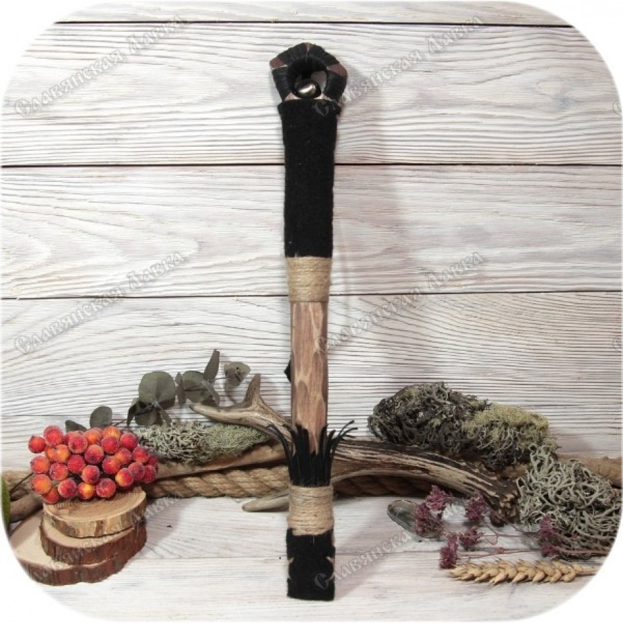 Материал Сибирский кедр, кожа черного цвета, карпет, пеньковая нить, металлический колокольчик