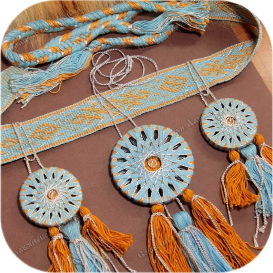 Представляем вашему взору дивный комплект, сотканный с любовью и вдохновением: очелье с изящными привесками и подвеской «Память Лады». Эти артефакты – плод кропотливого труда и многолетнего опыта мастерицы Мирославны, чей стаж в плетении славянских праздничных атрибутов насчитывает уже полтора десятилетия.