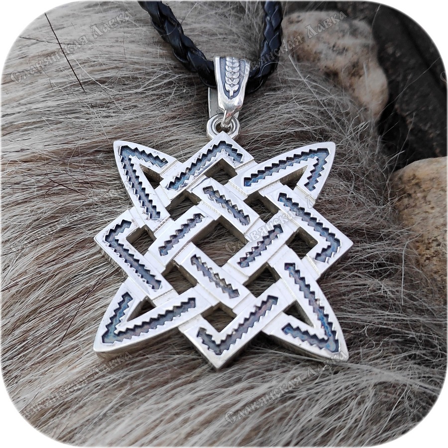 Наш самый заметный и увесистый вариант серебряного кулона «Квадрат Сварога» будет показывать всем и каждому, что Вы гордитесь своей культурой и родом, являетесь хранителем (хранительницей) семейного очага и родной земли. Отсутствие ограничительного круга и двусторонняя обработка позволяют проецировать мощь оберега не только вовнутрь себя, но и на родной дом в целом со всеми его обитателями.