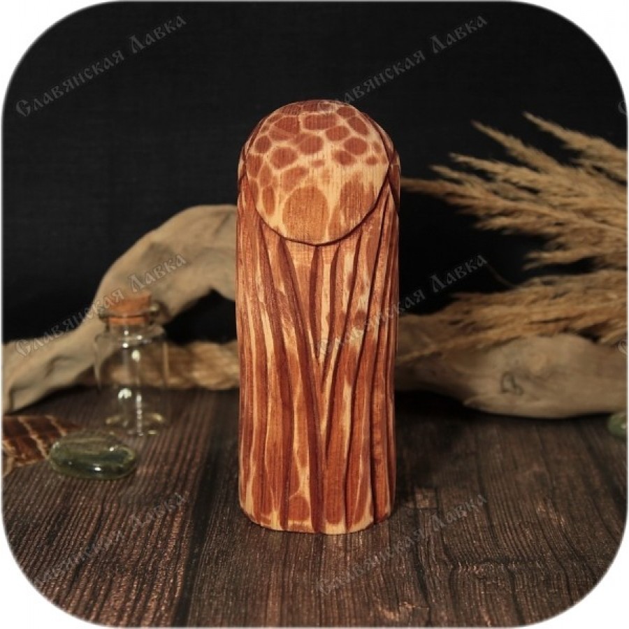 Идол создан вручную в соответствии с древними традициями. Ароматное и теплое дерево, используемое для изготовления, придает изделию особую энергетику. Для создания атмосферы старины и придания глубины текстуры, идол был тонирован морилкой, а затем аккуратно отшлифован, чтобы подчеркнуть выступающие части. Ценители скандинавской культуры, несомненно, по достоинству оценят этот уникальный артефакт.