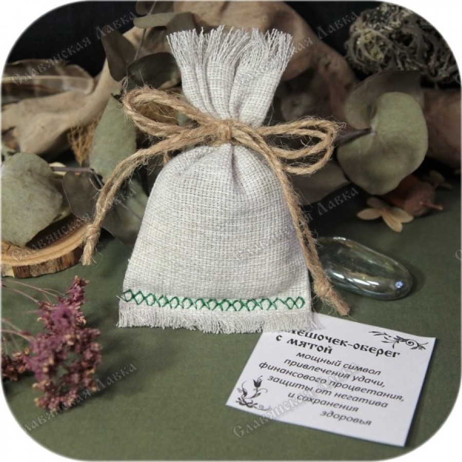 Считается, что мята, будучи наполнителем, обладает свойствами оберега. Она способствует приумножению достатка в вашем кошельке, гармонизирует состояние здоровья и оказывает благотворное успокаивающее воздействие.
