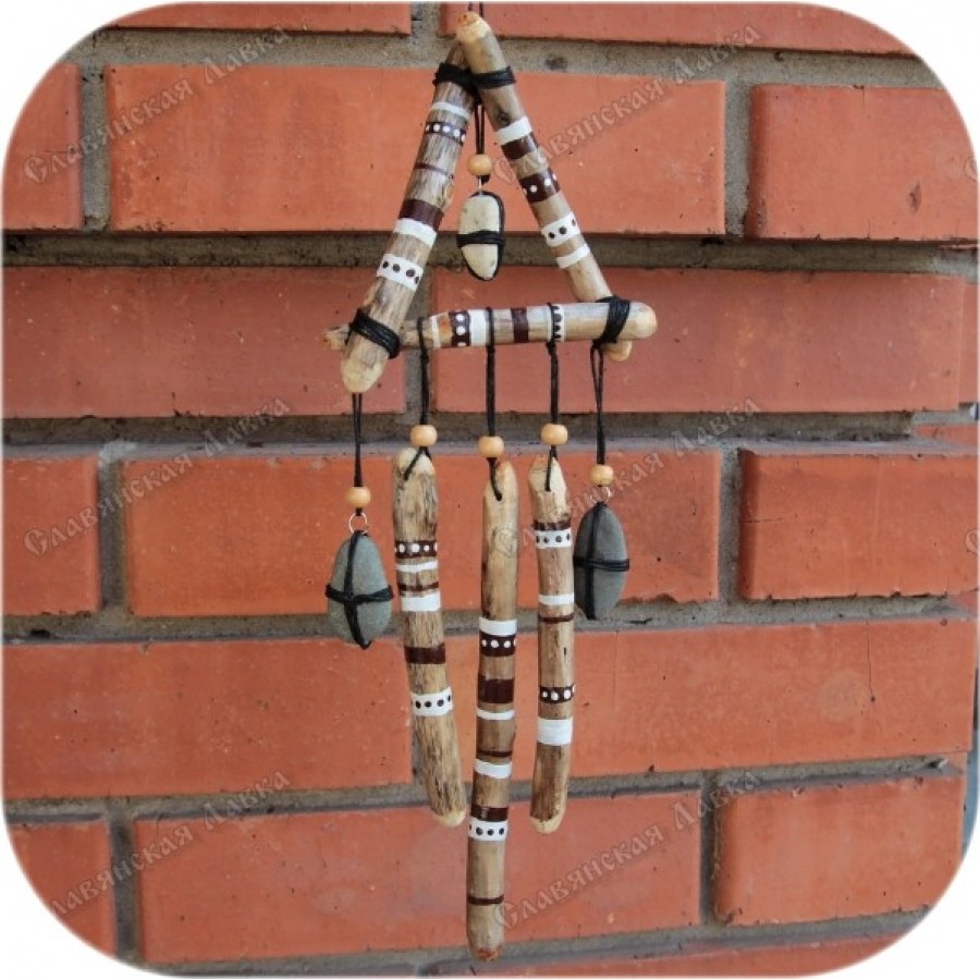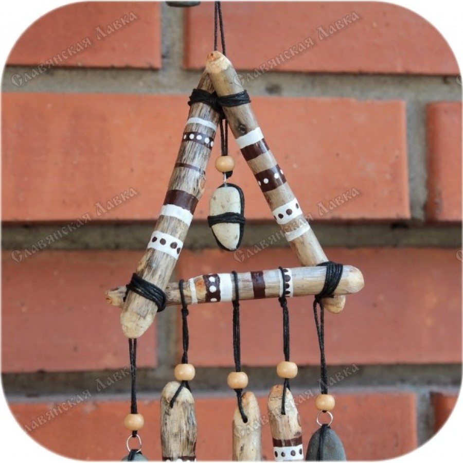 Это изысканное украшение привнесет неповторимый колорит в интерьер дачи, загородного дома, квартиры или офиса. «Стрибог» — это результат кропотливой работы художника, где гармонично сочетаются натуральное дерево и камень, дополненные авторской росписью. Выразительный этнический стиль изделия подчеркнет Вашу индивидуальность. Следует отметить, что музыкальная составляющая данного предмета заключается не в классическом звучании, а в деликатных переливах, рождаемых соприкосновением веточек и камней. В ветреную погоду «Стрибог» наполнит пространство мягкими звуками, напоминающими о живой природе.