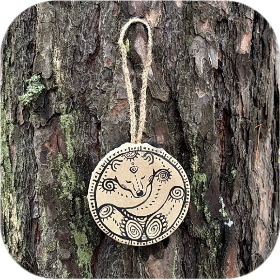 Рисунок спящего медведя выполнен в графике и нанесен на кожу акрилом. Это полностью авторская разработка художницы Алёнушки.
