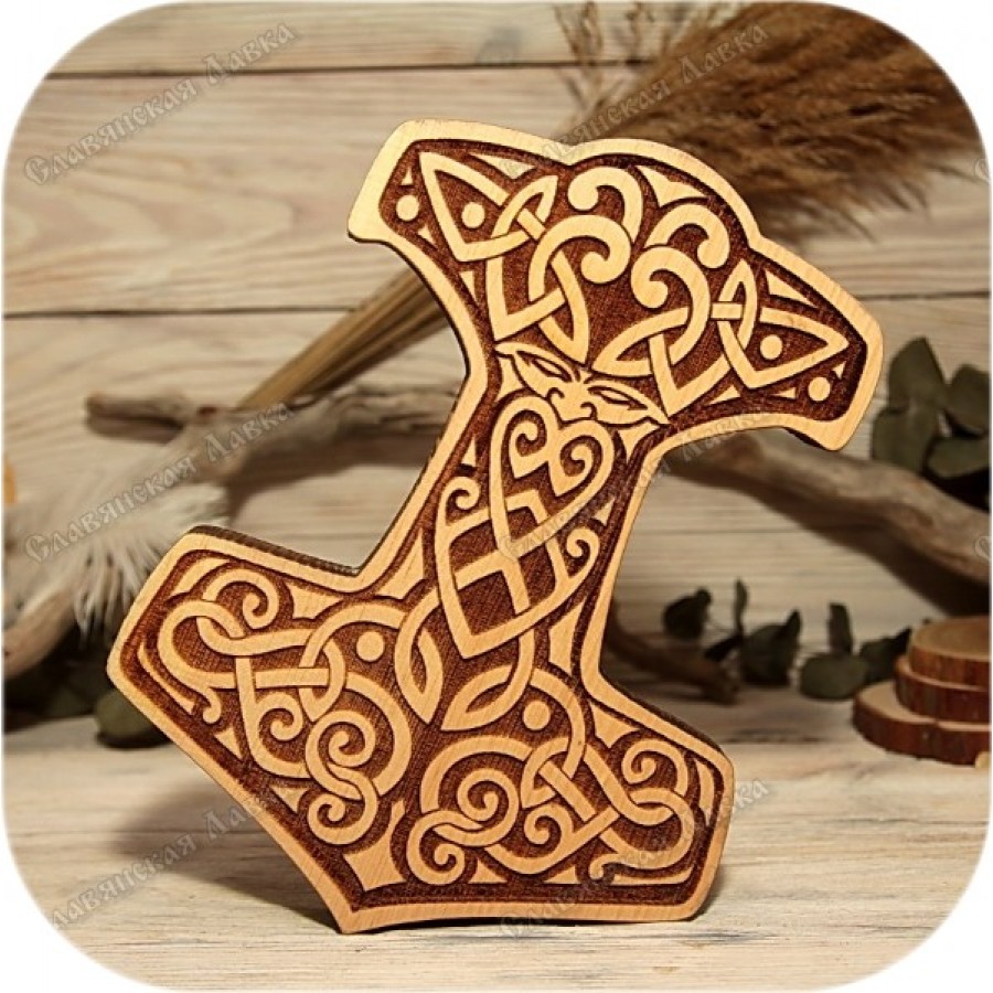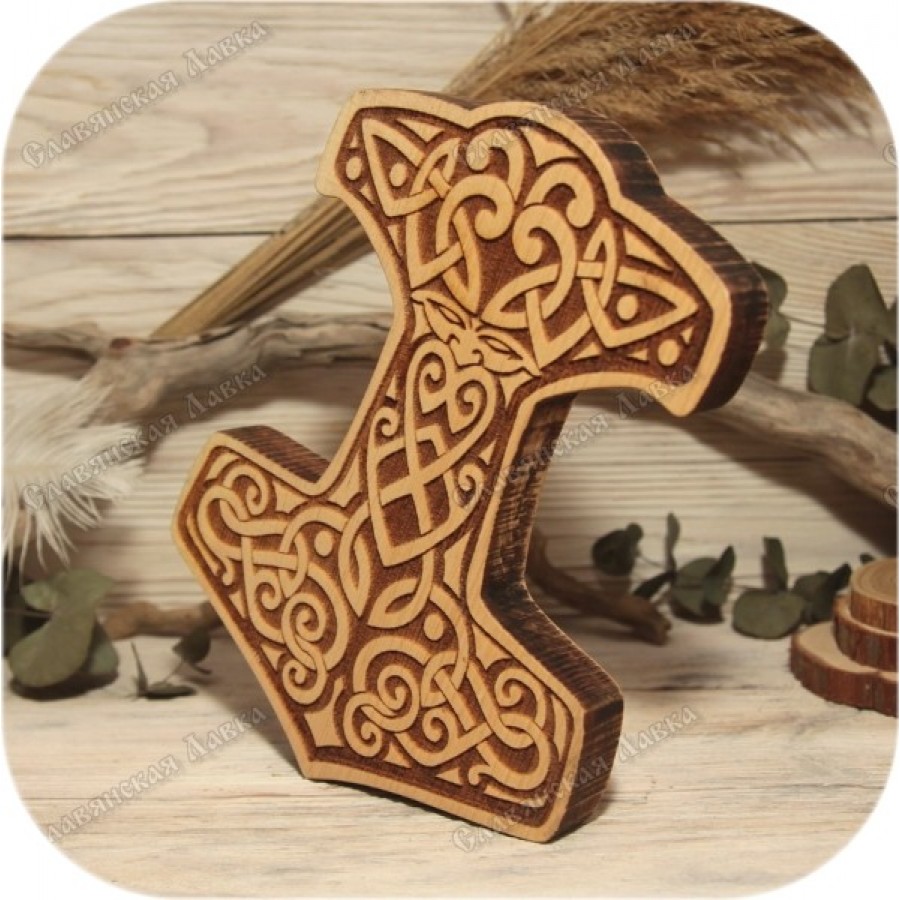 Изготовленный из цельного куска алтайского кедра, этот молот Тора станет не просто украшением, а ценным подарком для тех, кто увлечён скандинавским наследием. Он займёт достойное место на алтаре, посвящённом Одину и Тору, напоминая о величии и мудрости древних богов.