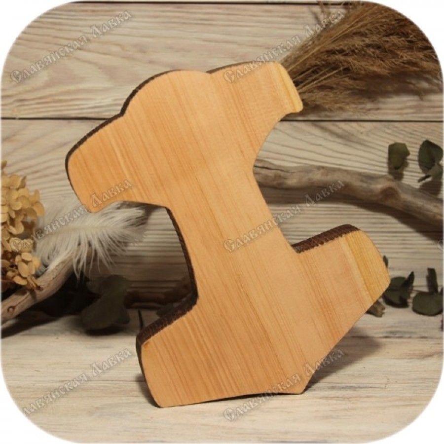 Представляем вашему вниманию искусно выполненный молот Тора, воплощённый в алтайском кедре. Это не просто артефакт, а символ мощи и древних скандинавских традиций, мастерски переданный в дереве. Молот, кажется, замер на земле, словно только что был выпущен из руки бога-громовержца. Его нельзя подвесить, но он идеально впишется в атмосферу алтаря или найдёт своё место на любой ровной поверхности, притягивая взгляды своей основательностью.