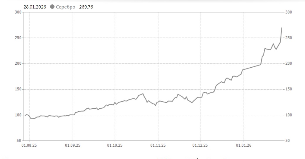 Причина подорожания обусловлена значительным ростом стоимости серебра на рынке. Летом 2025 года цена за грамм серебра составляла 100 рублей, в настоящее время она приближается к 300 рублям за грамм. От прогнозов относительно дальнейшей динамики цен мы воздержимся, но для наглядности прилагаем соответствующую диаграмму.