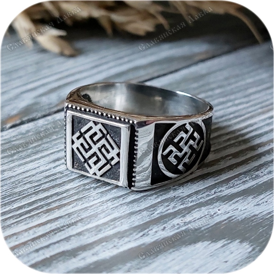 Мужской славянский перстень-оберег из серебра с символами «Родимич» (в центре) и «Перунов Цвет» (по бокам). «Родимич» - знак как молодых, начинающих осознавать свой Путь славян, так и их отцов. Первым символ поможет на распутье, не дав совершить ошибок. Вторым – поможет сосредоточить знания и опыт, чтобы передать их одному из сыновей вместе с перстнем (когда придет время). В любом случае обережная функция «Родимича» кроется в подключении родовой памяти предков, открытии возможностей для её полноценного использования, даже в неосознанном виде. «Перунов Цвет» - солярный символ, защищающий от темных сил и сохраняющий чистоту духа. Помогает раскрыть тайные способности и понять ранее недоступное. Пожалуйста, не забудьте указать при заказе желаемый размер серебряного перстня «Родимич». По возможным сочетаниям с другими серебряными изделиями лучше проконсультироваться у нас, но мы бы порекомендовали приобрести вместе с перстнем «Родимич» нательный оберег с аналогичным символом, либо символами «Род», «Сварожич», либо с двойным символом «Цветок Папоротника / Одолень-Трава».