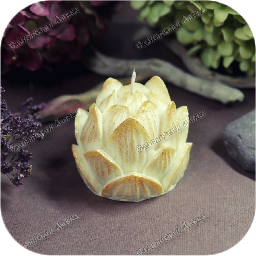 Этническая свеча, выполненная в форме цветка Лотоса. Лотос - это не просто цветок, это знак, символ, использующихся во многих культурах как элемент духовных практик, Пути. Считается, что он освещает своими лепестками землю. А значит, кому как не ему освещать тёмную комнату? Эта свеча сделана из цветного натурального пчелиного воска. Форма выведена специальным методом нашей мастерицей. Использование лотоса возможно во многих обрядах и ритуалах, а также во время медитаций, йоги, ароматерапии.