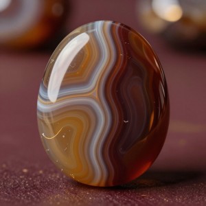 Агат может быть разных цветов, а типов агатов свыше 100. Но чаше всего это плоский камень с вкраплением полосок, которые образуют некую магию камня. После полировки камень становиться глянцевым и немного зеркальным.