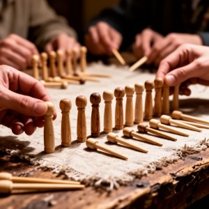 Вы зажимаете в руке некоторый пучок палочек-бирюлек, и, сжимая его в руке, разжимаете ладонь. Бирюльки рассыпаются небольшой кучкой внахлест.
