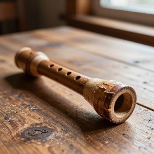 На противоположный конец трубки, в качестве природного резонатора, надевается либо натуральный (природный) коровий рог, либо берестяной раструб.