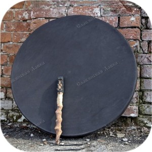 Таких бубнов очень много. И это нормально. В таких случаях кожа крепится к ободу бубна в мокром состоянии и фиксируется намертво. Для большинства регионов проживания людей в нашей стране такой тип бубнов подходит. Так как цена таких бубнов на два порядка дешевле тех, что имеют возможность натяжения. Но даже в этом случае натяжение бубна можно регулировать путем прогревания перед работой над костром (с тыльной стороны) или просушкой на окне в солнечную погоду.